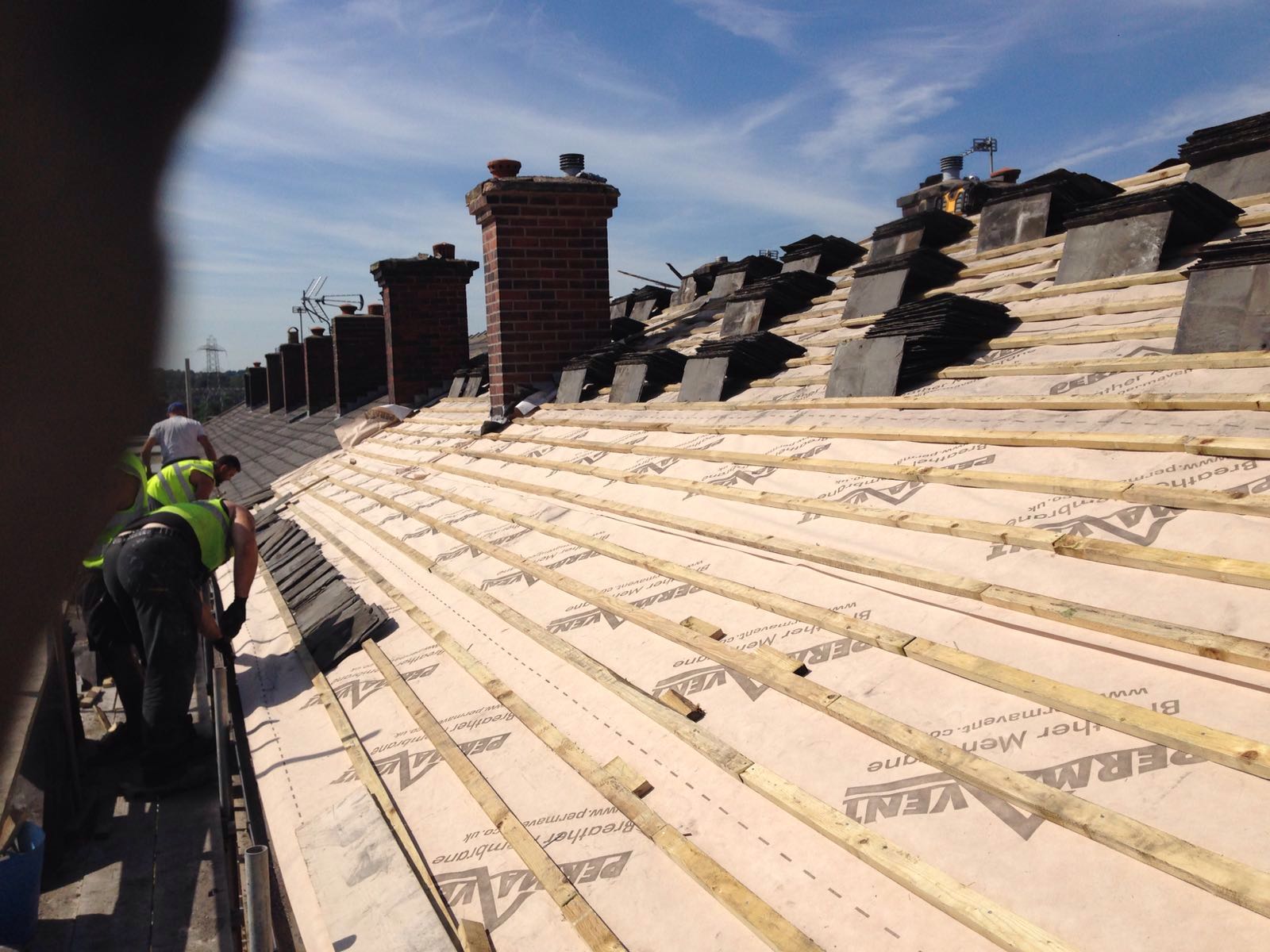 Re-slate new felt and new battens on 3 houses in a row